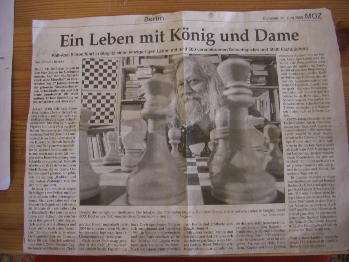 Ein Leben mit Köig und Dame Ralf-Axel Simon führt in Steglitz einen einzigartigen Laden mit rund 500 Schachspielen und 5000 Fachbücher von Dietmar Bender