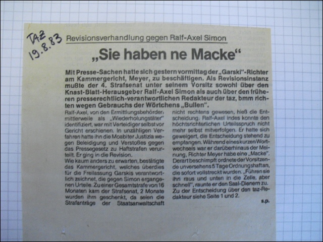 Revisionsverhandlung gegen Ralf-Axel Simon "Sie haben ne Macke" für die TAZ Sabine Porn